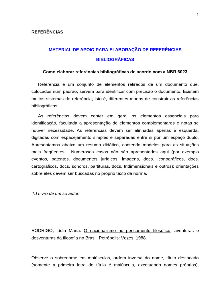 MATERIAL DE APOIO PARA ELABORAÇÃO DE REFERÊNCIAS