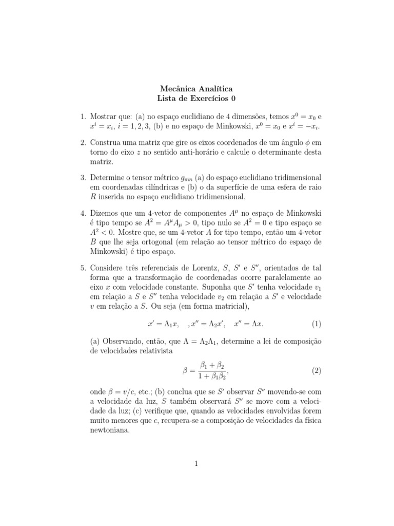 1. Mostrar que: (a) no espaço euclidiano de 4 dimensões, temos x0 = x0 e