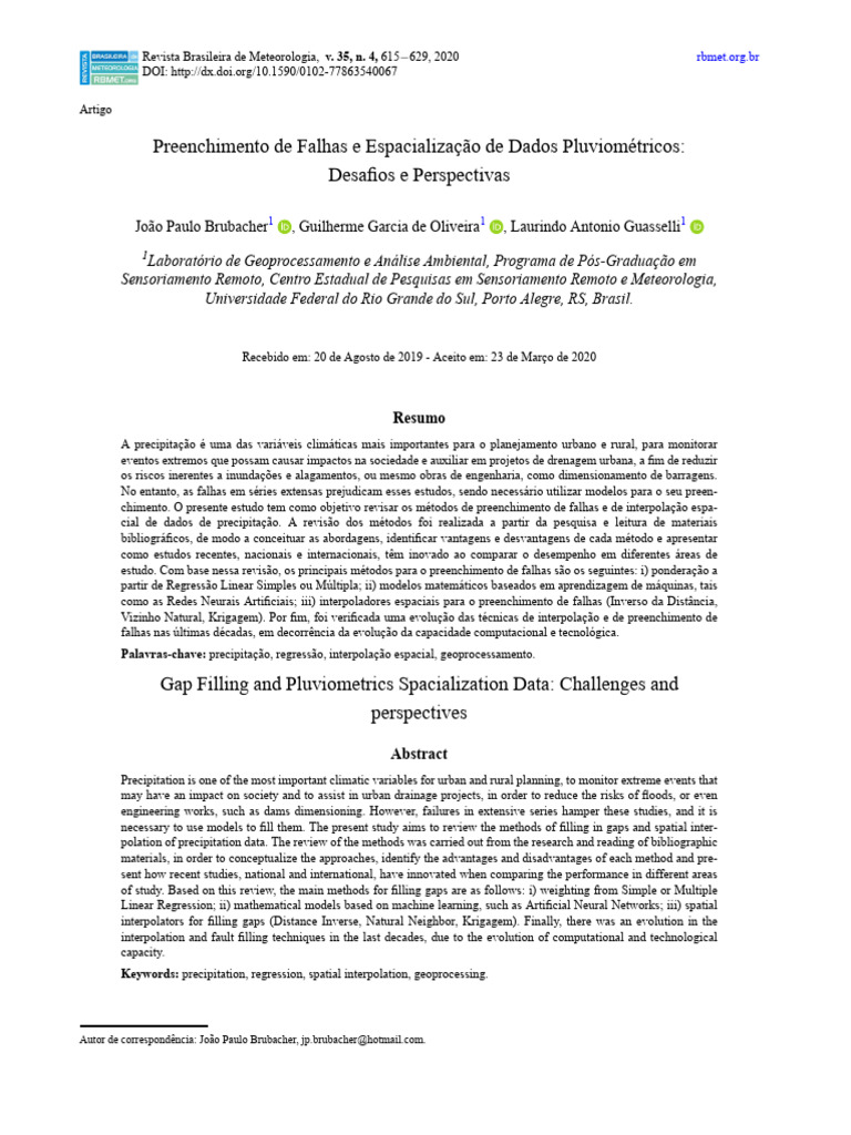 cial de dados de precipitação. A revisão dos métodos foi realizada a partir da pesquisa e leitura de materiais