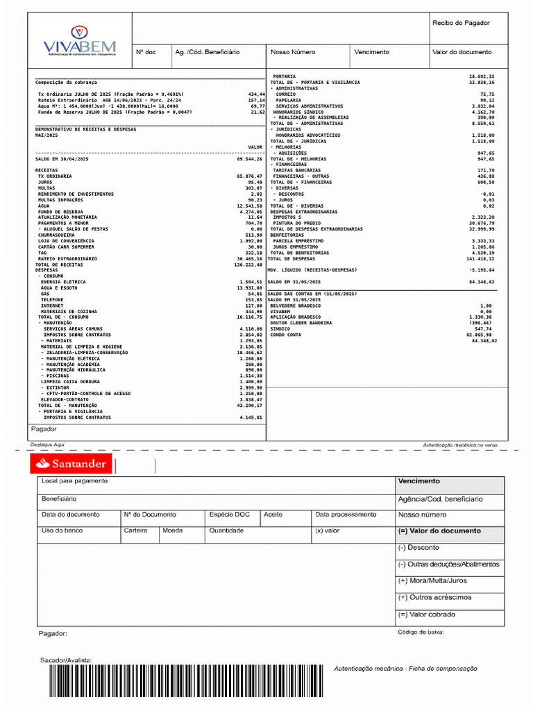 Pagável preferencialmente em qualquer agência Santander. 10/07/2025