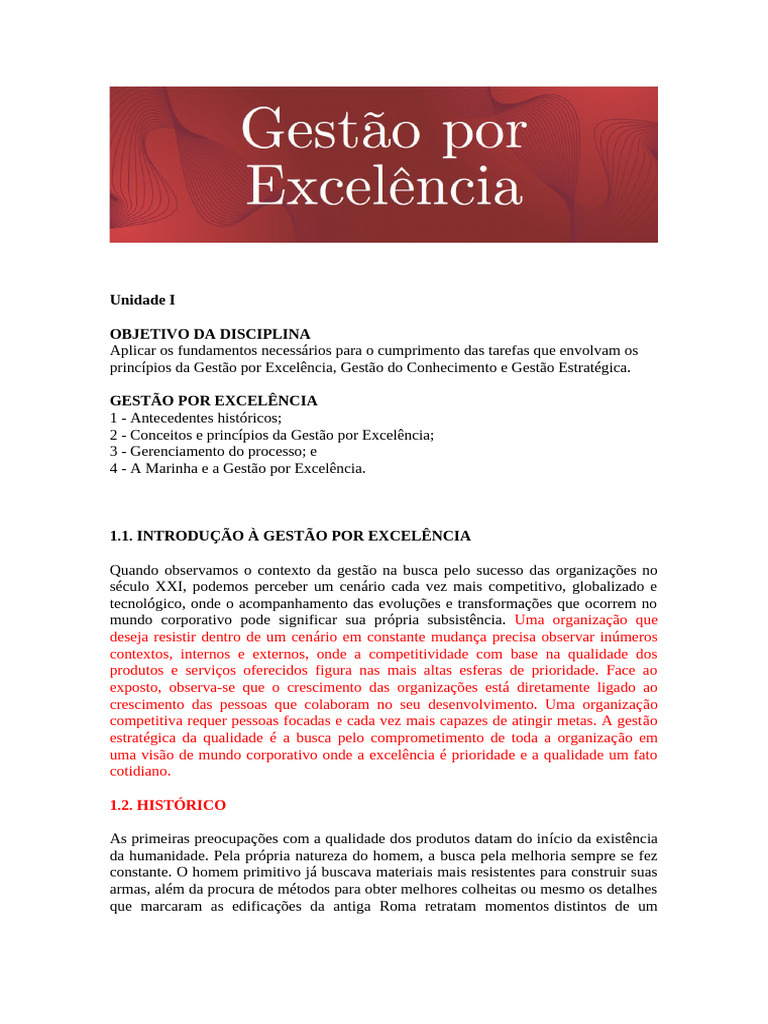 1.1. INTRODUÇÃO À GESTÃO POR EXCELÊNCIA