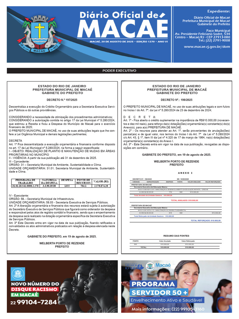 2025; MUNICIPAL DE MACAÉ, no uso de suas atribuições legais que Anexo(s), para a(o) PREFEITURA DE MACAÉ.