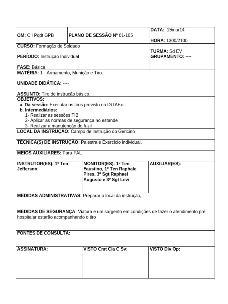 - Tempo estimado: conforme o número de instruendos.