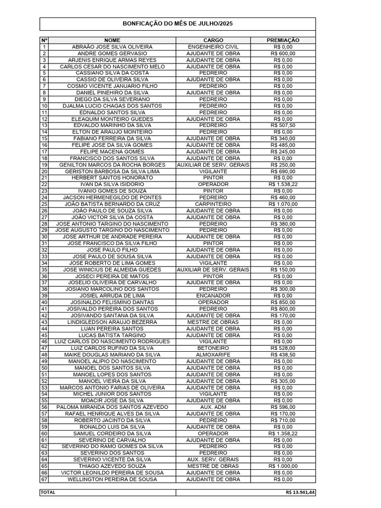 49 MANOEL ALIPIO DO NASCIMENTO AJUDANTE DE OBRA R$ 0,00