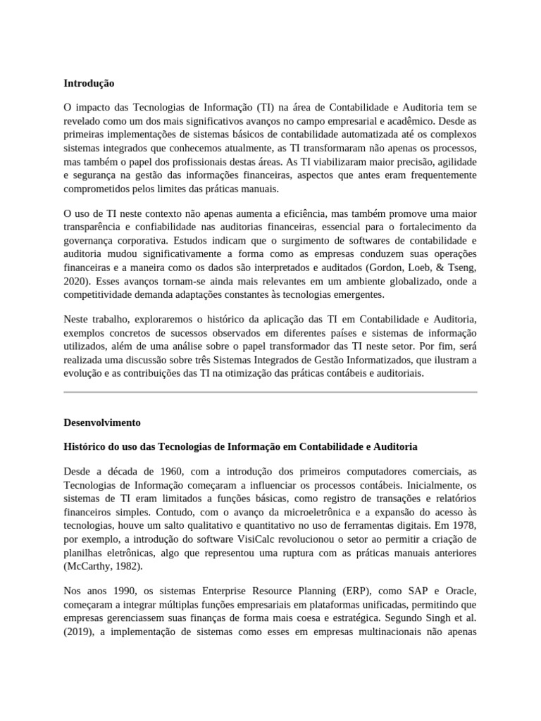 evolução e as contribuições das TI na otimização das práticas contábeis e auditoriais.