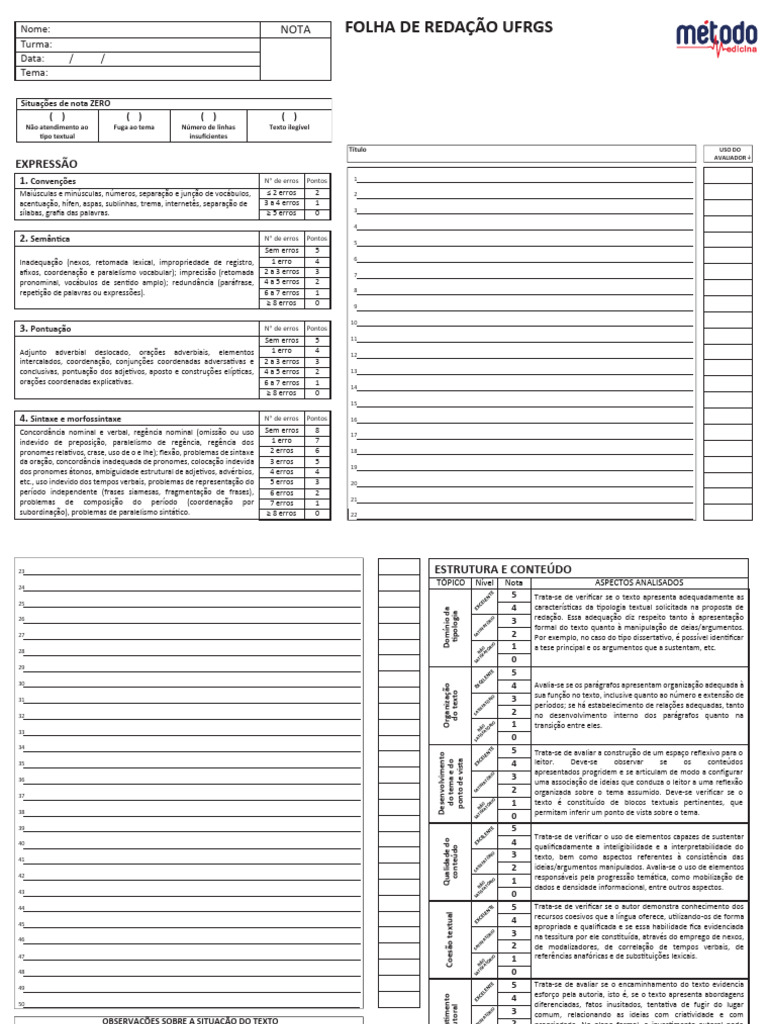 Nome: NOTA FOLHA DE REDAÇÃO UFRGS