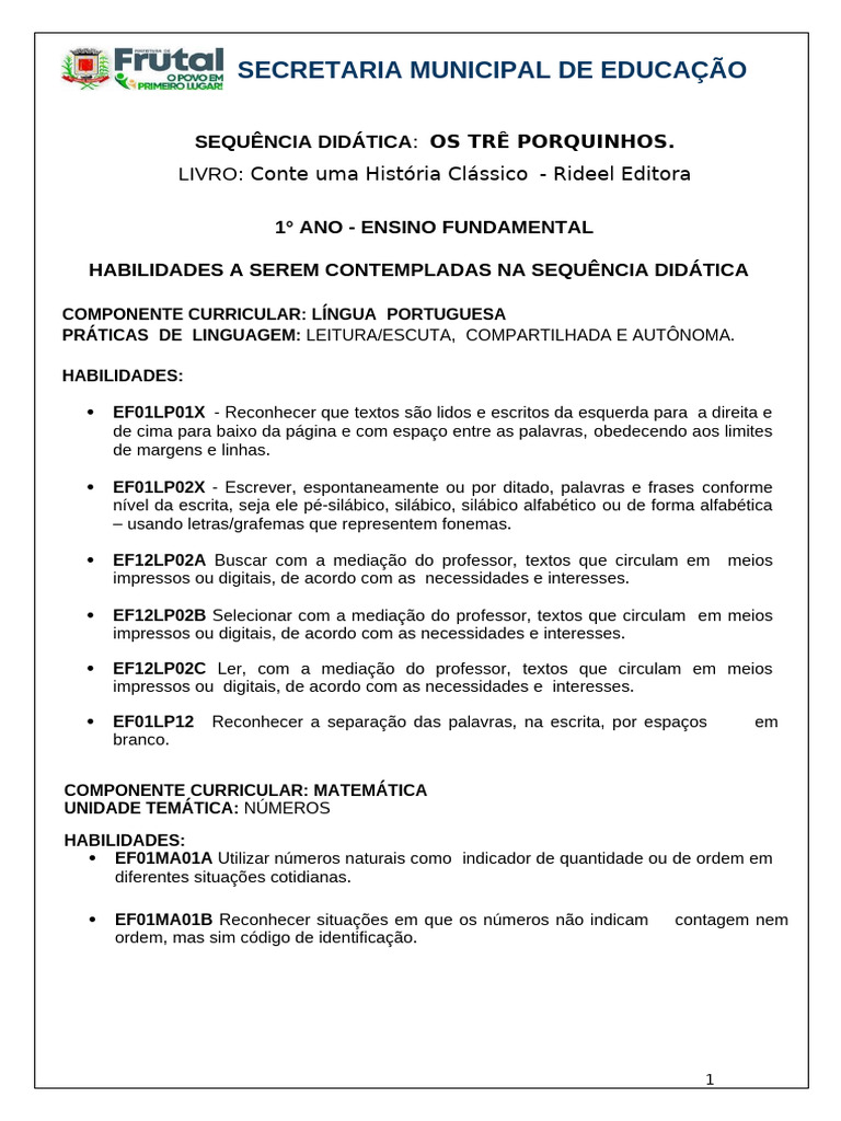 HABILIDADES A SEREM CONTEMPLADAS NA SEQUÊNCIA DIDÁTICA