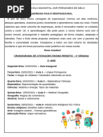 estabelecidos para as atividades, realizando-as de acordo com os dias da
