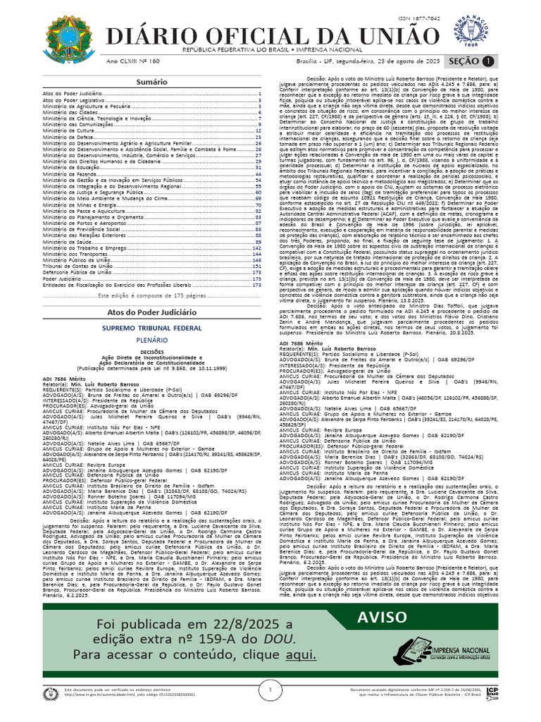 Seção 1 ISSN 1677-7042 Nº 160, segunda-feira, 25 de agosto de 2025