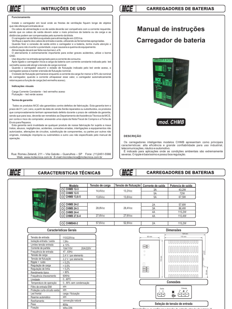 MCE CARACTERISTICAS TÉCNICAS MCE CARREGADORES DE BATERIAS