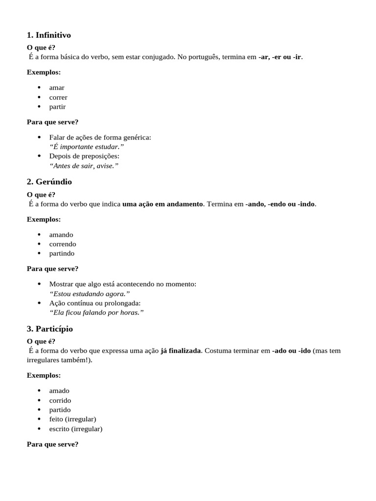 Infinitiv -ar, -er, -ir Falar da ação sem conjugar “Vou viajar amanhã.”