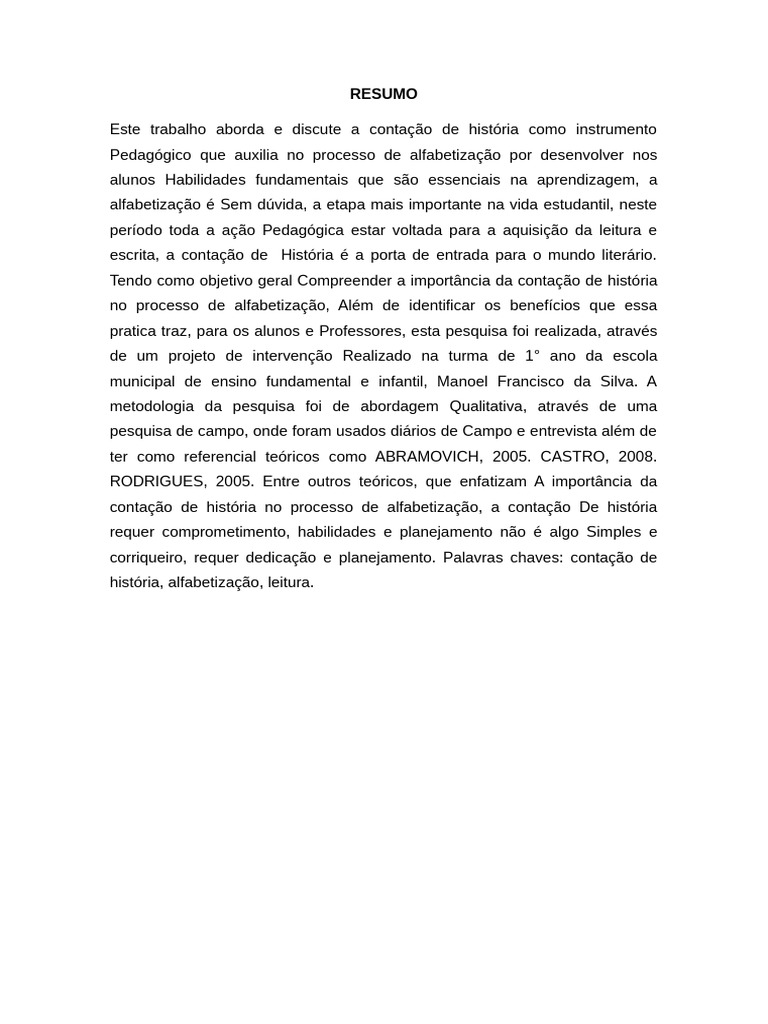 ter como referencial teóricos como ABRAMOVICH, 2005. CASTRO, 2008.