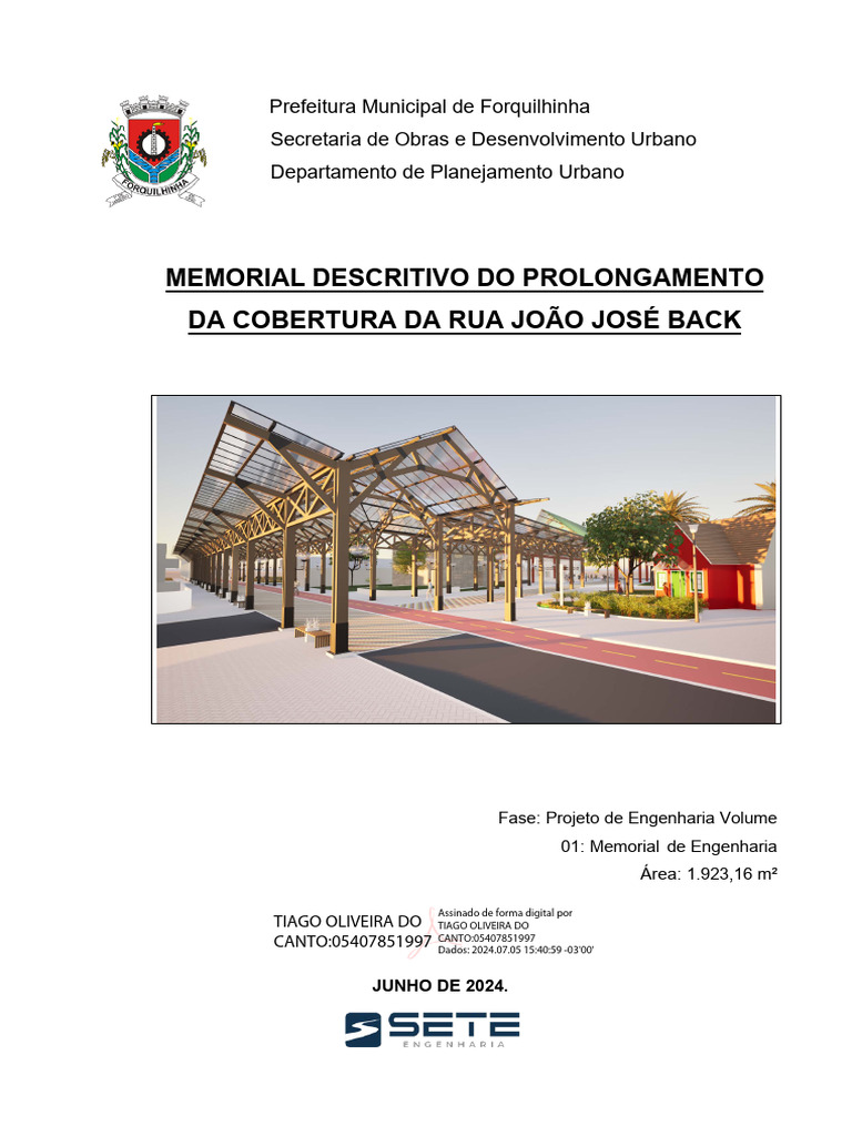 Elaboração de Projeto de Urbanização (urbanístico / arquitetônico) do prolongamento da rua coberta da rua João José Back e Alameda Felipe Arns com área total de 1.923,16 metro quadrado.