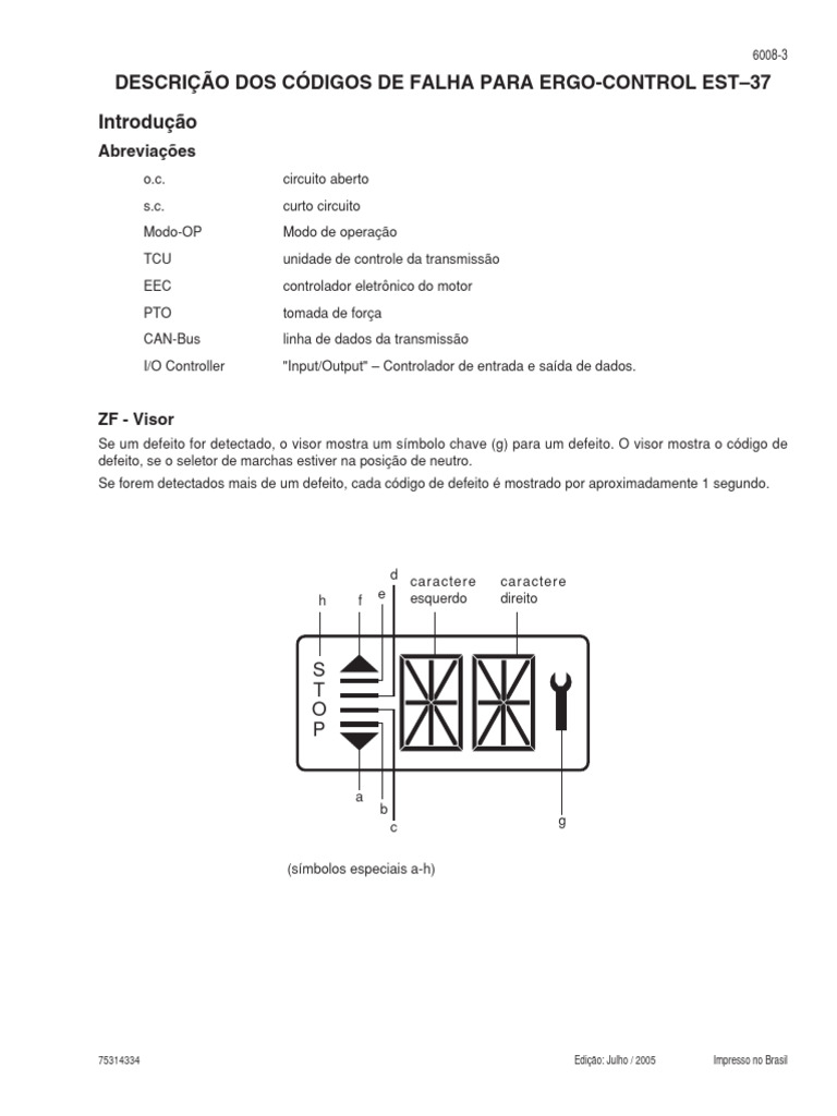 DESCRIÇÃO DOS CÓDIGOS DE FALHA PARA ERGO-CONTROL EST–37