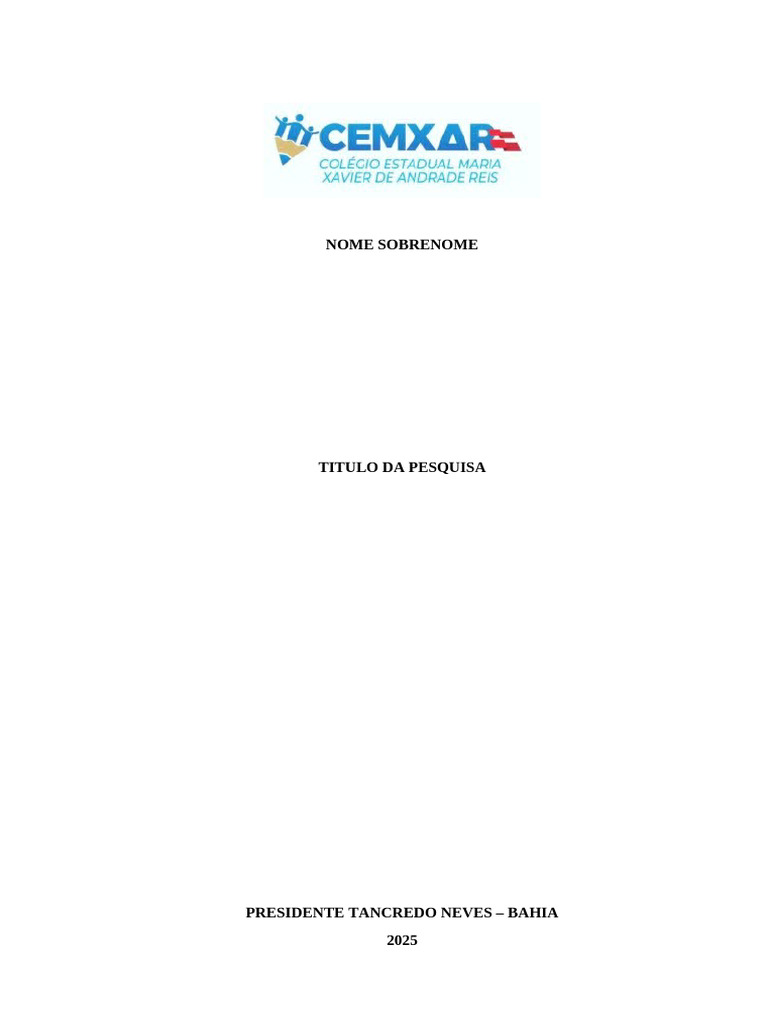 Tipo de trabalho (grau) – Instituição, Local, ano.