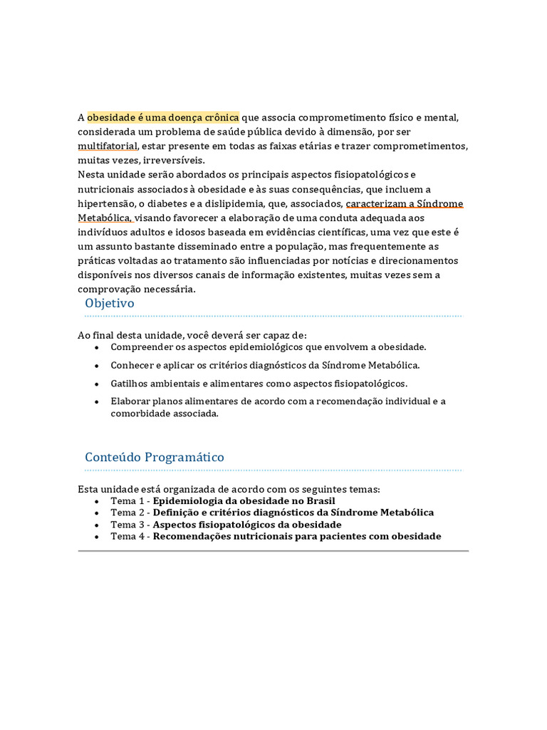 Nesta unidade foi possível conhecer a obesidade e a sua dimensão, incluídos os
