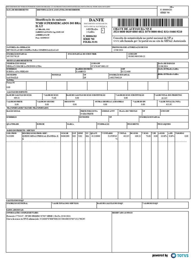 NEOLAT COM DE LATICINIOS LTDA 07.876.067/0001-33 13/06/2024