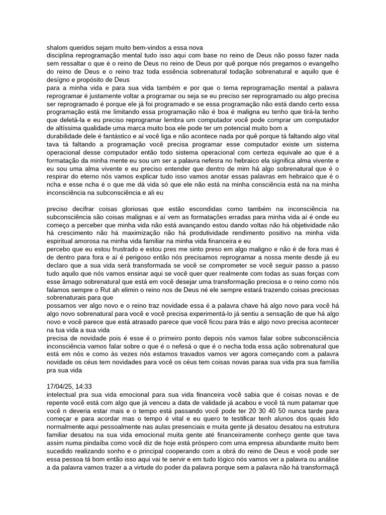 disciplina reprogramação mental tudo isso aqui com base no reino de Deus não posso fazer nada
