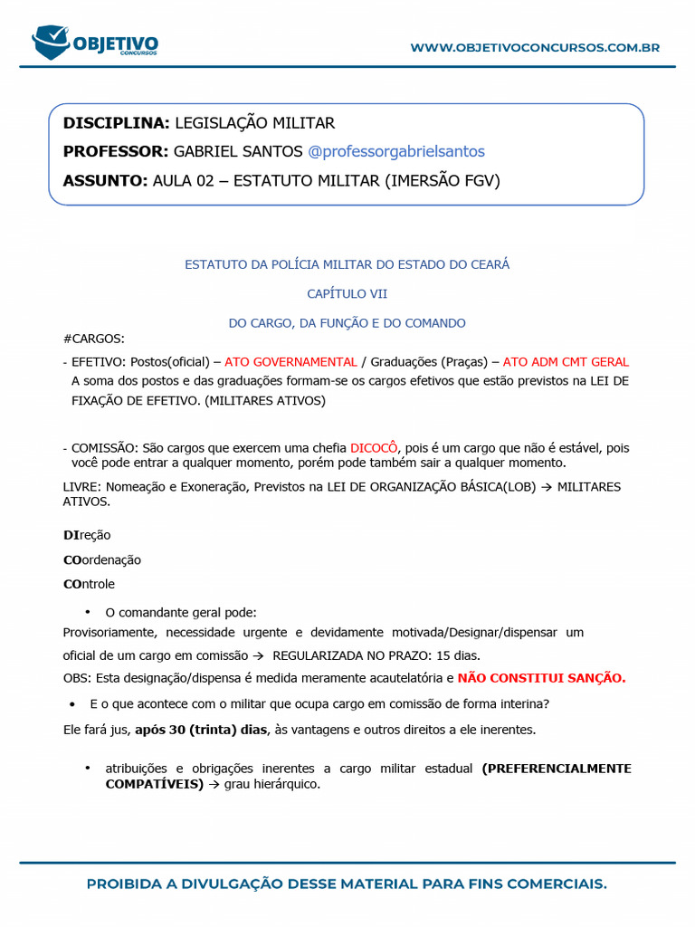 ASSUNTO: AULA 02 – ESTATUTO MILITAR (IMERSÃO FGV)