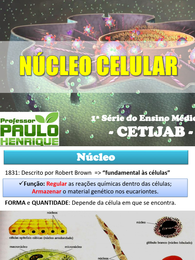 • Massas densas e arredondadas presentes dentro do núcleo;