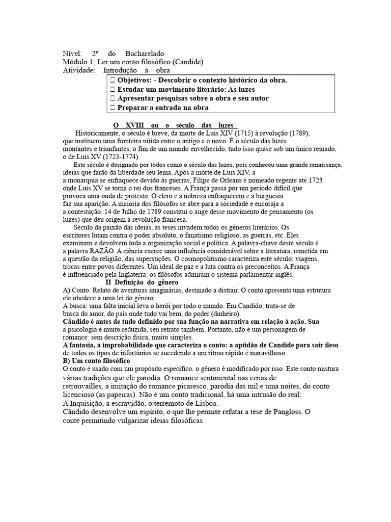 Módulo 1: Ler um conto filosófico (Candide)