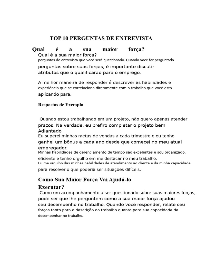 TOP 10 PERGUNTAS DE ENTREVISTA