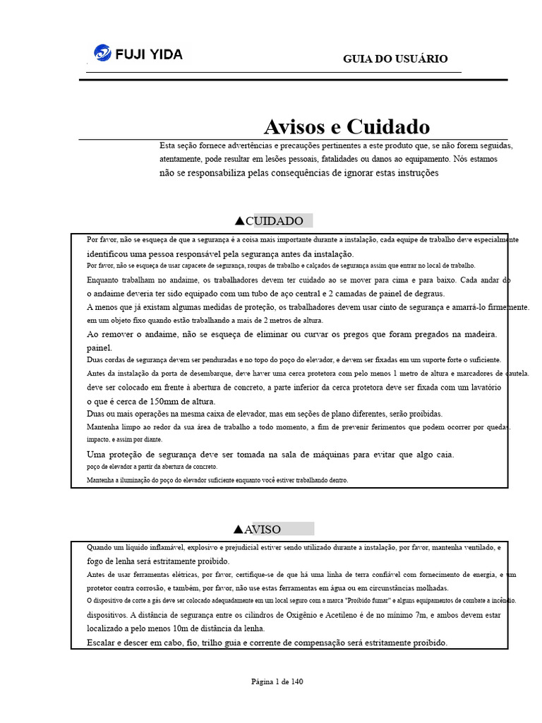 Avisos e Cuidado