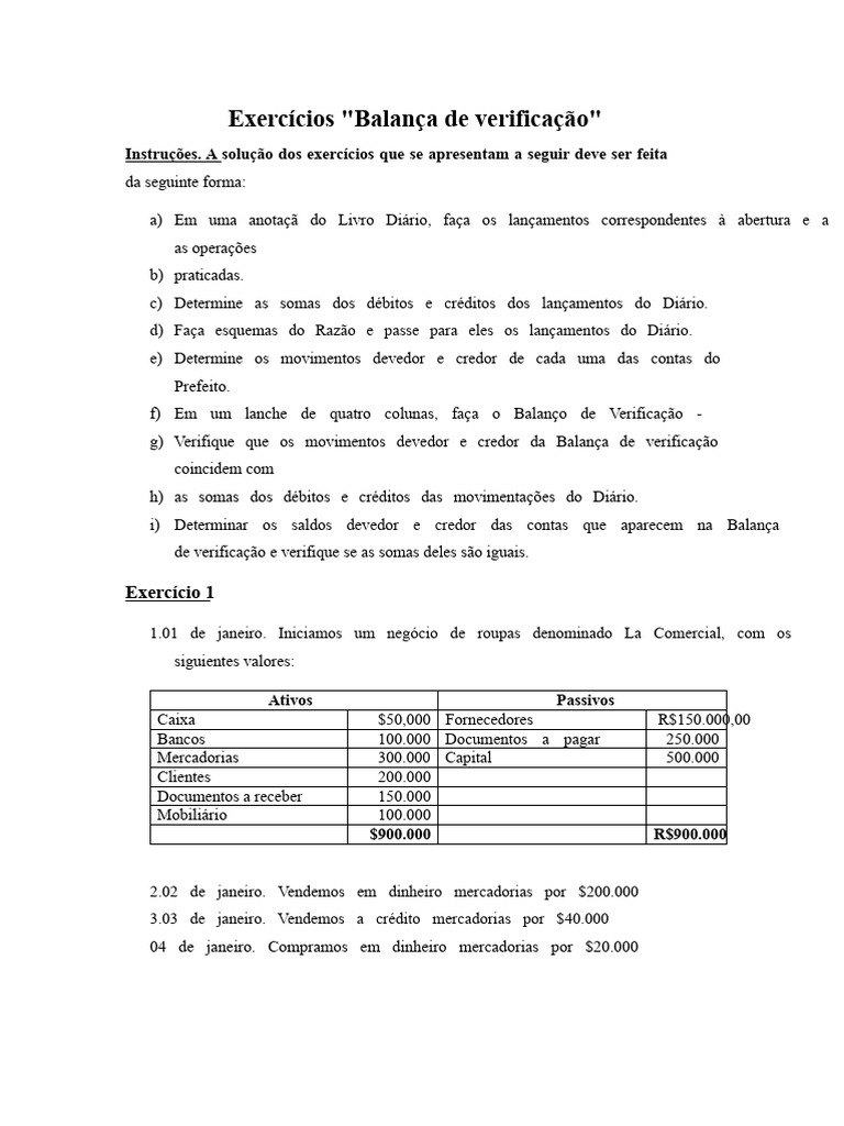 Exercícios "Balança de verificação"