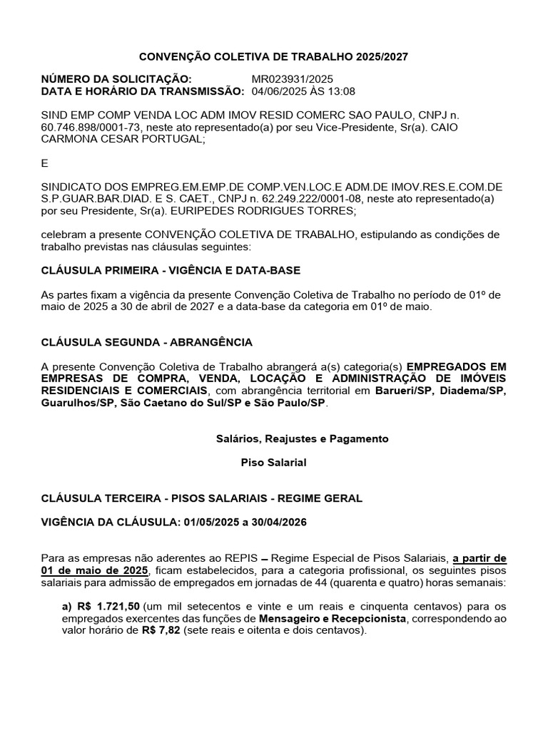 CONVENÇÃO COLETIVA DE TRABALHO 2025/2027