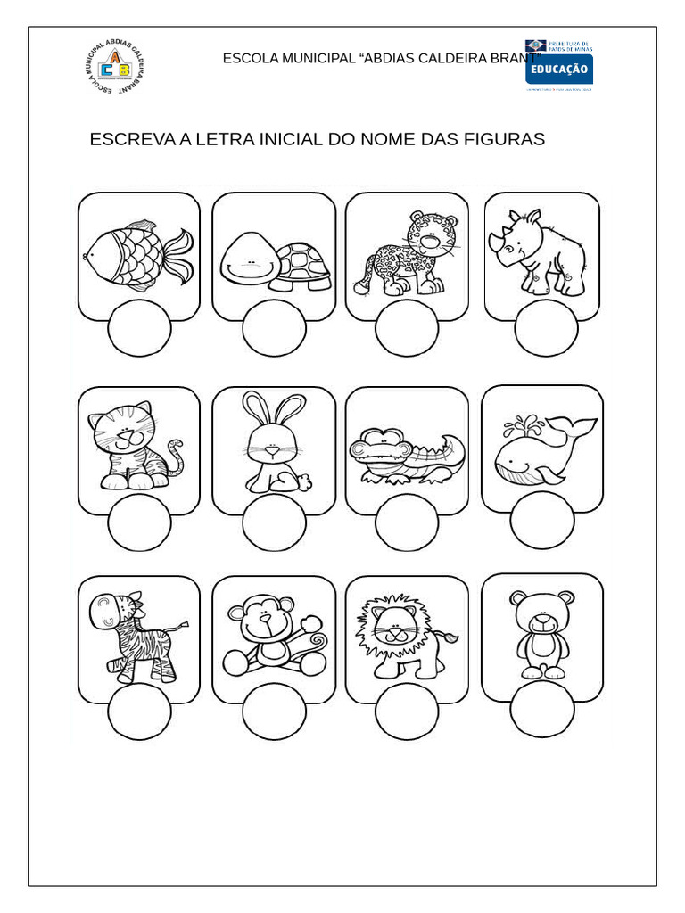 ESCREVA A LETRA INICIAL DO NOME DAS FIGURAS