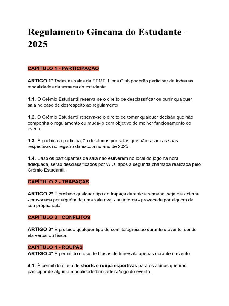 ARTIGO 1° Todas as salas da EEMTI Lions Club poderão participar de todas as