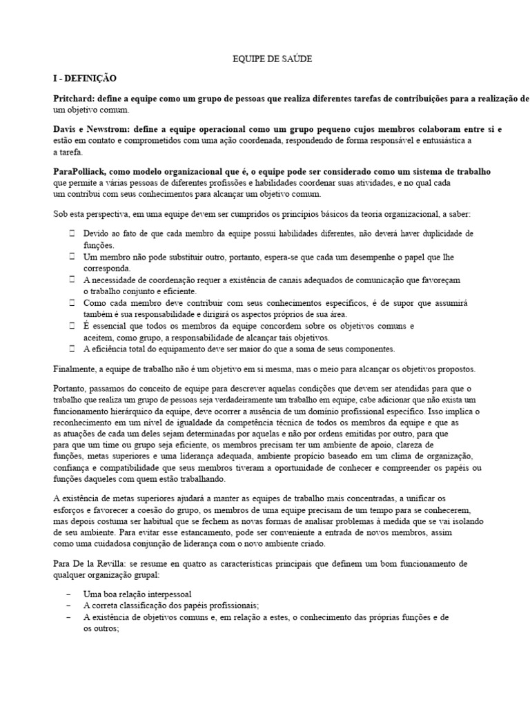 A equipe de saúde é definida pela OMS, em 1973, como uma associação não hierárquica de pessoas, com