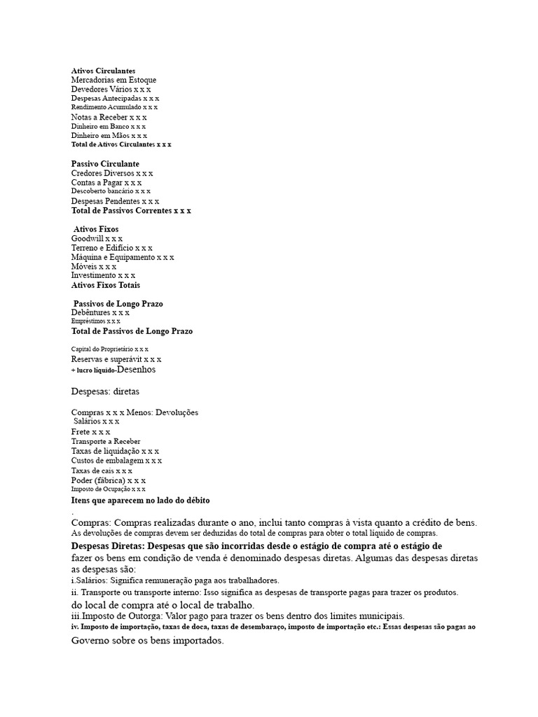 Itens que aparecem no lado do débito (Despesas Indiretas)