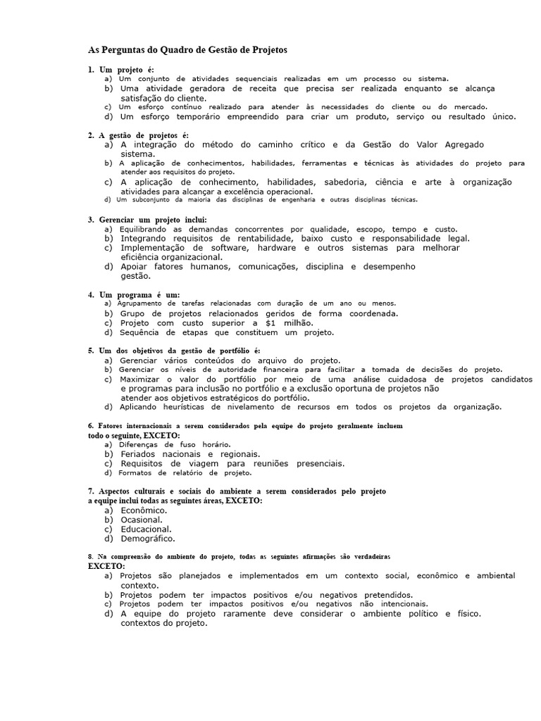 O Padrão para Gestão de Projetos de um Projeto Perguntas