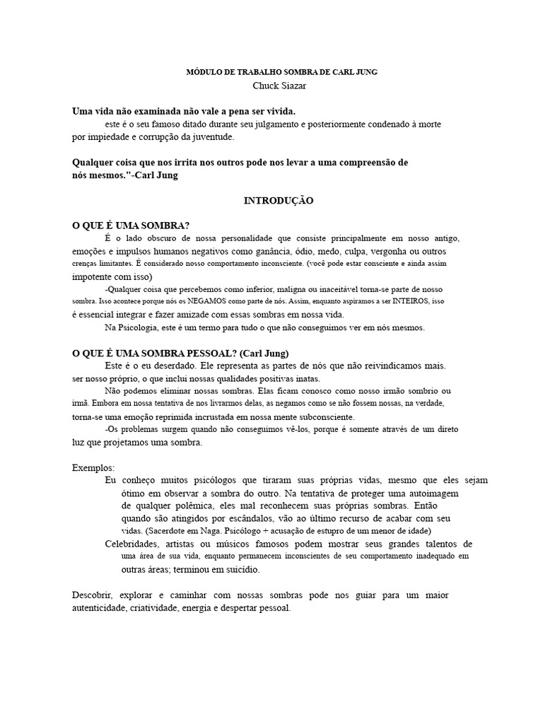 Uma Vida Não Examinada Não Vale A Pena Ser Vivida.: Módulo de Trabalho Sombra de Carl Jung