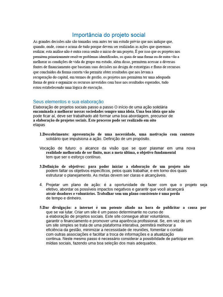 Um projeto social pode ser definido como: Entende-se por projeto de desenvolvimento