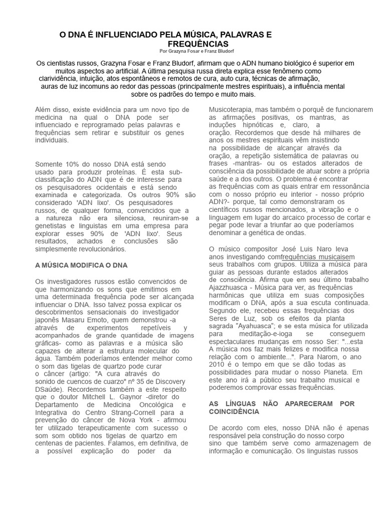 ter utilizado terapeuticamente com sucesso o De acordo com eles, nosso DNA não é apenas