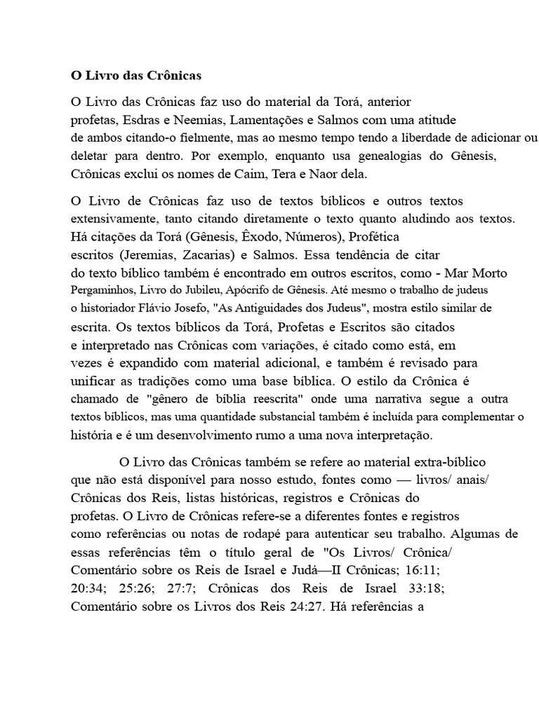 O Livro de Crônicas faz uso de textos bíblicos e outros textos