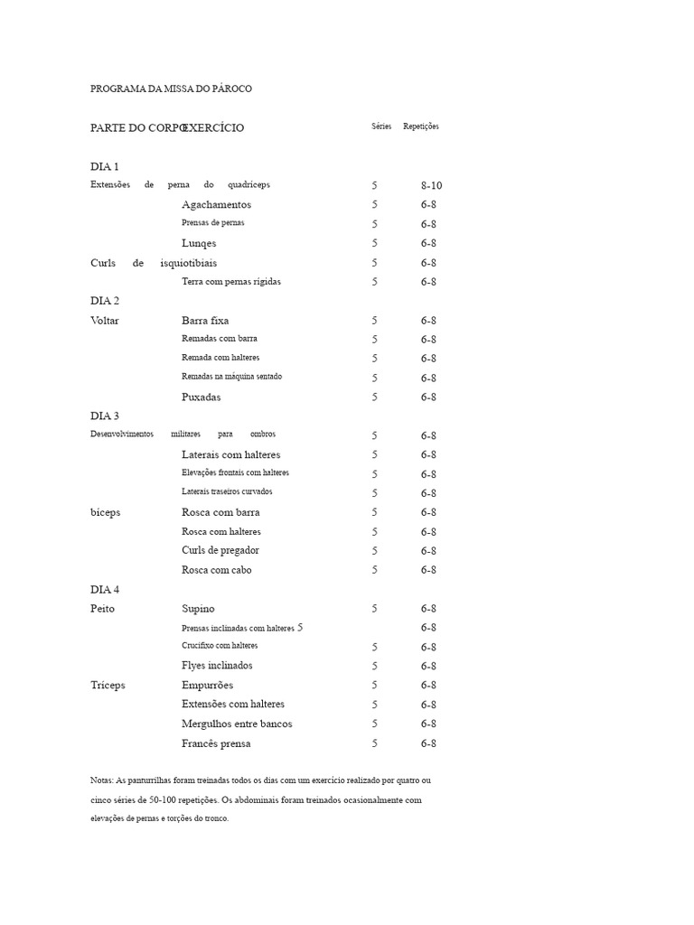 Notas: As panturrilhas foram treinadas todos os dias com um exercício realizado por quatro ou