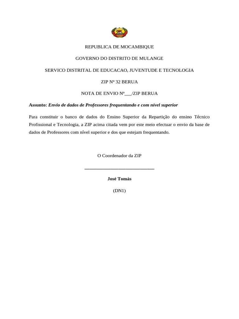 Profissional e Tecnologia, a ZIP acima citada vem por este meio efectuar o envio da base de