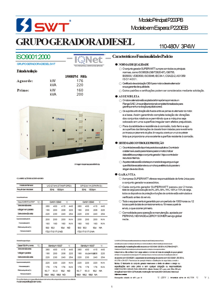 CLASSIFICAÇÕESDEALTERNADORES A empresa SUPERWATT oferece responsabilidade de fonte única para