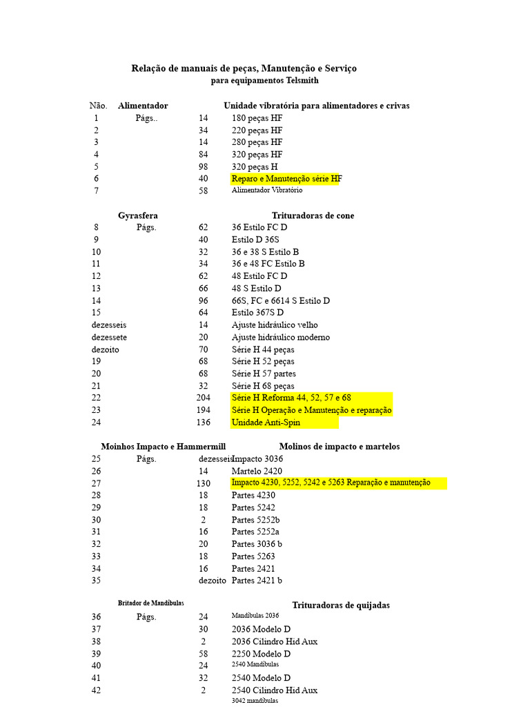 Relação de Manuais Telsmith