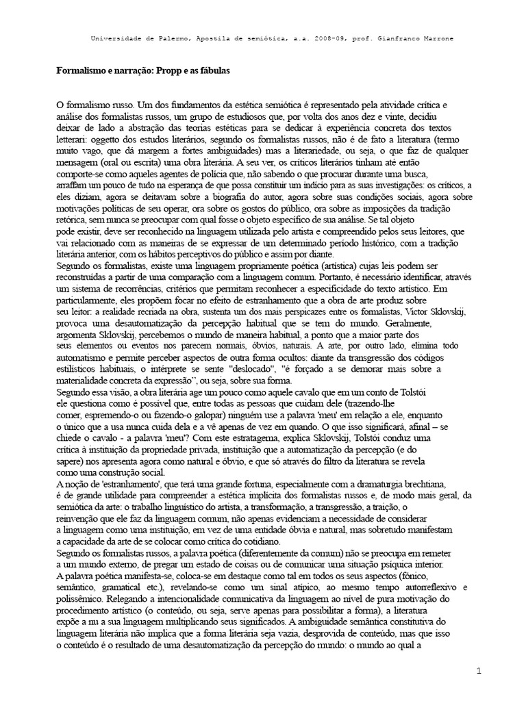 Universidade de Palermo, Material de semiótica, a.a. 2008-09, prof. Gianfranco Marrone