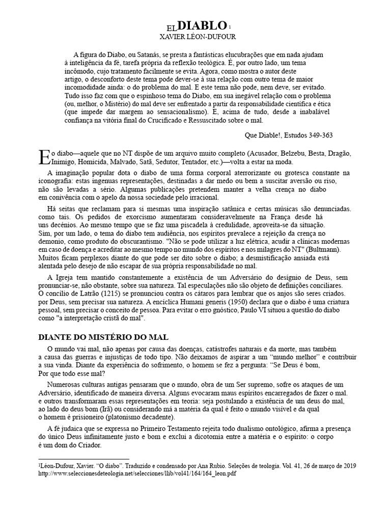 1Léon-Dufour, Xavier. “O diabo”. Traduzido e condensado por Ana Rubio. Seleções de teologia. Vol. 41, 26 de março de 2019