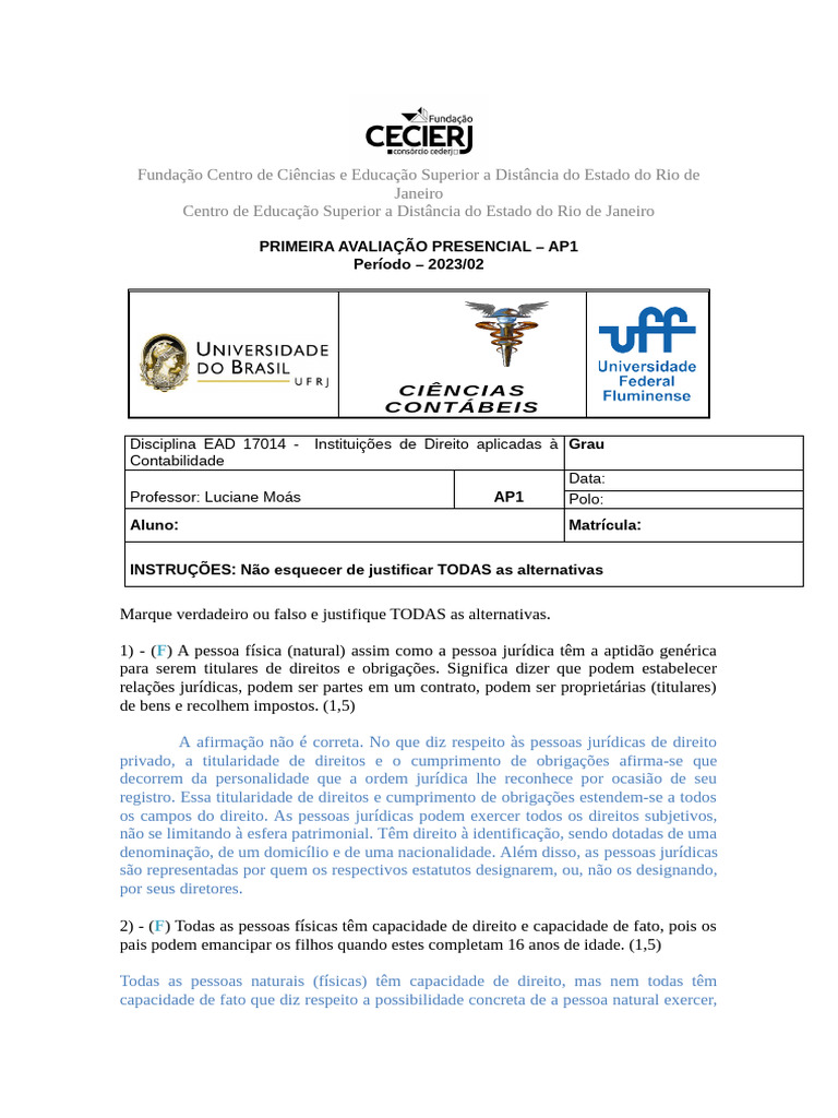 1) - Todas as questões deveriam ser justificadas. Para as questões com as