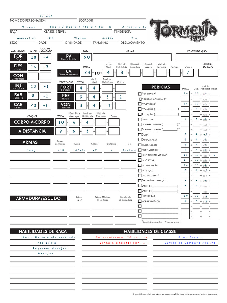 NOME DO PERSONAGEM JOGADOR