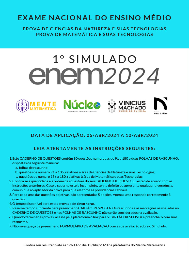 Informações Iniciais | 1º Simulado ENEM 2024