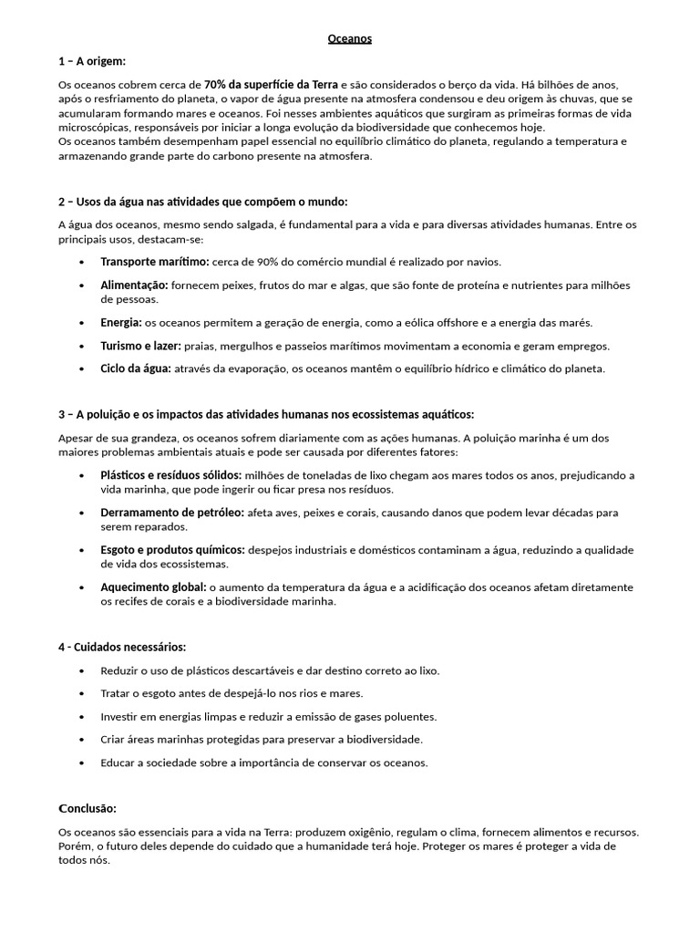 A água dos oceanos, mesmo sendo salgada, é fundamental para a vida e para diversas atividades humanas. Entre os