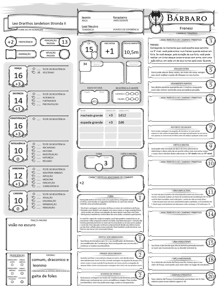 no 3° nível, você pode entrar num frenesi quando estiver em