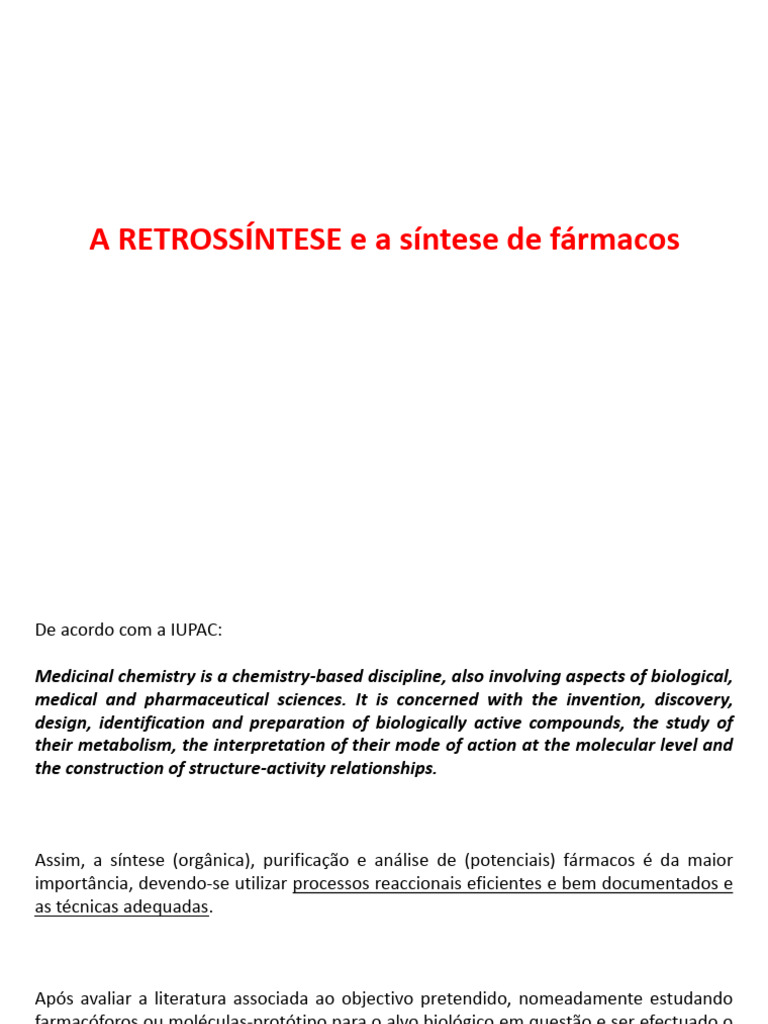 A RETROSSÍNTESE e a síntese de fármacos